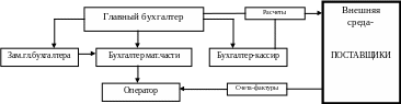 Организационные элементы: администрация, бухгалтерия, склады, фасовка, торговый зал, охрана.