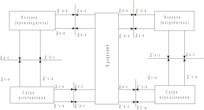 В общем случае для продукции характерно следущее воздействие на уровне компоненты в сфере производства и потребления.