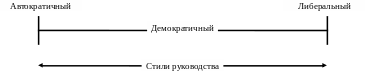 Каждая организация представляет собой уникальную комбинацию индивидов, целей и задач. Каждый управляющий  это уникальная личность, обладающая рядом способностей. Поэтому стили руководства не всегда можно отнести к какой-то конкретной категории. По традиционной системе классификации стиль может быть автократичным (это одна крайность) и либеральным (другая крайность) или это будет стиль, сосредоточенный на работе, и стиль, сосредоточенный на человеке. Илл. 1 иллюстрирует автократичный  либеральный континуум.