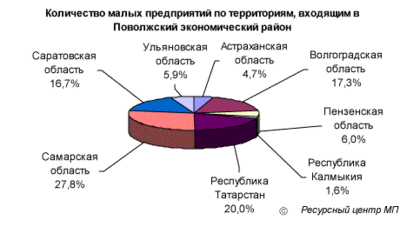 Численность постоянно работающих на МП – 557,2 тыс. человек (доля Поволжского экономического района в общей численности постоянно работающих на МП в РФ – 9,0%). Количество МП на 1000 жителей (в среднем по РФ – 5,9 малых предприятий на 1000 жителей) Доля работающих на МП в общем числе занятых - 7,9% (в среднем по РФ – 10,1%).