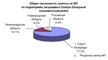 | 2. Общая численность занятых на МП – 910,8 тыс. человек (доля Северо-Западного экономического района в общей численности занятых на МП в РФ – 12,3%) |