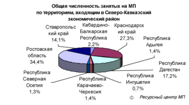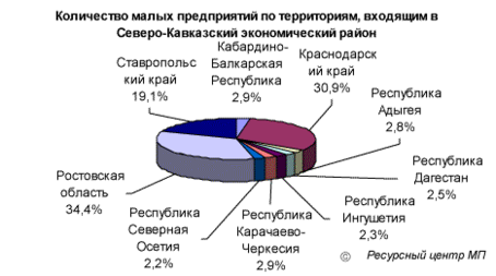 Численность постоянно работающих на МП – 686,5 тыс. человек. Количество малых предприятий – 71 тыс. (доля Северо-Кавказского экономического района в общей численности постоянно работающих на МП в РФ – 11,1%) Количество МП на 1000 жителей. Количество малых предприятий – 71 тыс. (в среднем по РФ – 5,9 малых предприятий на 1000 жителей) Доля работающих на МП в общем числе занятых - 11,2%. Количество малых предприятий – 71 тыс. (в среднем по РФ – 10,1%)