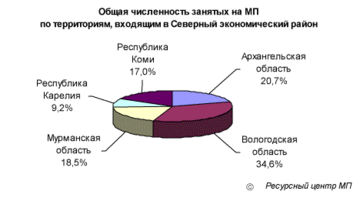 | 2. Общая численность занятых на МП – 190,6 тыс. человек (доля Северного экономического района в общей численности занятых на МП в РФ – 2,6%) |