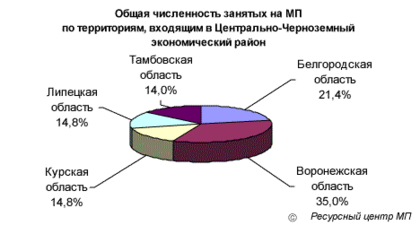 | 2. Общая численность занятых на МП – 224,6 тыс. человек (доля Центрально-Черноземного экономического района в общей численности занятых на МП в РФ – 3,0%) |