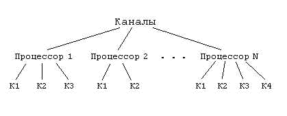 Кроме иерархии каналов определены иерархии ресурсов процессоров и задач.