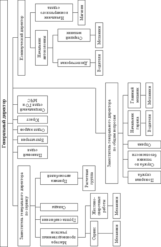 Служба сервиса и ремонта автомобилей, во главе с заместителем генерального директора по сервису. Данное подразделение занимается выполнением коммерческих работ по обслуживанию автотранспорта клиентов, в ее состав входят: