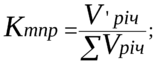 Розрахунок наступного показника Ктпр дасть змогу кількісно виміряти ту часку, яку займає окремий вид продукції в загальному об’ємі товарної продукції, виробленої на протязі року. Цей показник розраховується за формулою 7 шляхом ділення об’єму товарної продукції окремого виду на загальний об’єм товарної продукції.