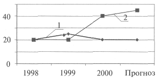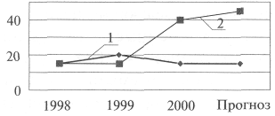 Рис. 1. 1 -УИ; 2- CIT оценивается на 40% .