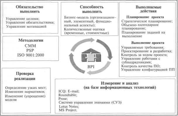 Цикл BPI действует на каждом уровне СММ. В табл. 2 проведены параллели между общими свойствами СММ и элементами стандарта ИСО 9001:2000.