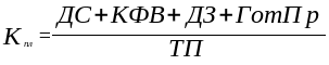 Коэффициент промежуточной ликвидности — это способность предприятия выполнять краткосрочные обязательства за счет денежных средств, краткосрочных финансовых вложений, дебиторской задолженности (счета к получению) (ДЗ) и готовой продукции на складе (ГотПр)