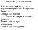 На выходе технологической цепочки всегда имеются как положительные, так и отрицательные результаты. К положительным результатам относятся качество товаров или услуг, прибыль, занятость населения. К возможным негативным результатам относятся дефекты, потери, безработица, которые могут иметь положительное значение для ТЦ, но отрицательное для общества. Почти все управленческие решения, даже те, которые в целом носят положительный характер, имеют определенные негативные последствия [149]. Повышение эффективности в конкретной организации, например, может вести к сокращению рабочих мест в ней или в смежных отраслях. При сравнительной оценке эффективности руководители должны вычитать прямые затраты, связанные с отрицательными результатами, чтобы найти истинную эффективность. Вполне очевидно, что при определении показателя эффективности на основе объема выпуска, в него нельзя включать дефектные изделия или некачественные услуги. Менее очевидно проявление косвенных воздействий отрицательных результатов.