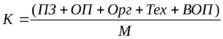 Потім визначається коефіцієнт корисної роботи всієї групи робітників (або обладнання) як відношення суми моментів (спостережень), що враховують підготовчо-заключну роботу ПЗ, оперативну роботу ОЧ, обслуговування робочого місця Тех, Орг, час на відпочинок і особисті потреби ВОП до загальної кількості спостережень М: