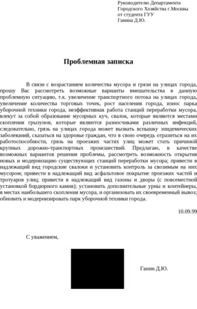 Составляется проблемная записка, в которой производится обоснование необходимости решения проблемы, например, как на рис.1.