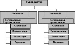 Региональная структура управления используется компаниями, выпускающими продукцию ограниченной номенклатуры, и ориентированными на широкие рынки сбыта и конкретного потребителя. Недостатком этой структуры управления являются трудности передачи технической информации заграничными дочерними компаниями, а также координация деятельности по стране и по продукту. Особенно усиливаются эти трудности для компаний, выпускающих оборудование и имеющих много линий продуктов. Другая важная проблема, возникающая при региональной структуре управления, - это возможность дублирования линейной и функциональной ответственности, в особенности в региональных отделениях.