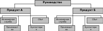 Возможный недостаток структуры – увеличение затрат вследствие дублирования одних и тех же видов работ для различных видов продукции. В каждом продуктовом отделении есть свои функциональные подразделения, но, возможно, не такого размера, чтобы максимально эффективно использовать имеющиеся технические средства и оборудование.