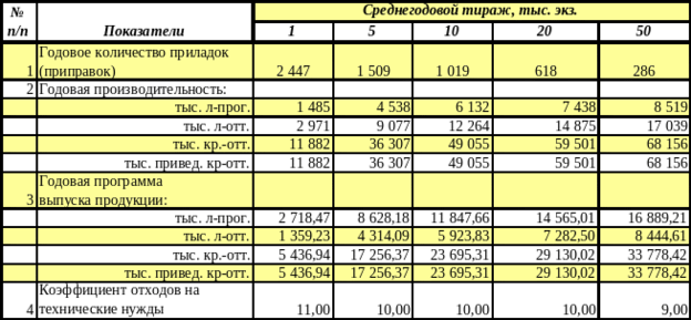 Для определения годовой производительности печатной машины необходимо также знать годовую производительность единицы оборудования (кроме печатного) для расчета годовой производственной программы запуска и выпуска продукции.