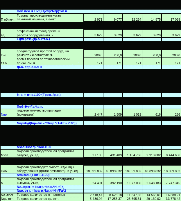 РАСЧЕТ ГОДОВОЙ ПРОИЗВОДИТЕЛЬНОСТИ ЕДИНИЦЫ ПЕЧАТНОГО ОБОРУДОВАНИЯ