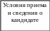заявление о приеме (первое общее впечатление о кандидате); фотография (внешность); биография ( процесс становления, детали личности); личная анкета (систематизация самой важной информации о поступающем, хранение данной информации); диплом (успеваемость в ВУЗе, относительные сведения о квалификации); трудовая книжка (место работы в биографии, прежние сферы деятельности, квалификационная характеристика); рекомендации (профпригодность); разговор с поступающим (заполнение пробелов в информации, дает личное представление о поступающем); пробная работа (умения и навыки в работе).
