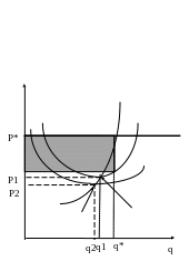 По рыночной цене фирма может реализовывать продукцию без ограничений. Цель фирмы - максимизация экономической (не бухгалтерской) прибыли (): =(q) = TR - TC(q) max = *