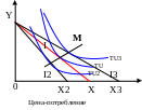 График «Цена-потребление» показывает зависимость потребляемого объёма от изменения цены данного товара. По мере снижения цены товара Х (PX3