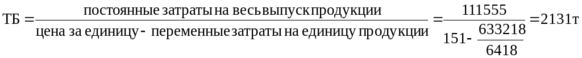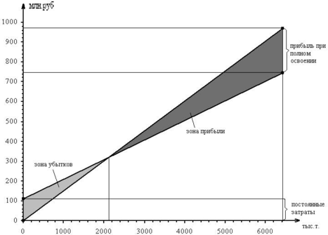 6.Точка безубыточности – это минимальный размер выпуска продукции, при котором обеспечивается нулевая прибыль, рассчитывается аналитически и графически (рис.1).