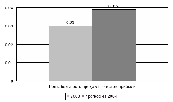 Рисунок 3.6 – Рентабельность продаж по чистой прибыли, прогноз на 2004 г.