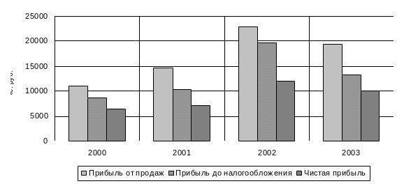 Рисунок 2.10 - Динамики прибыли за 2000 - 2003 год