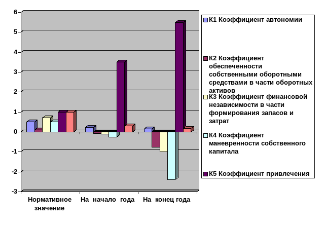| К3 Коэффициент финансовой независимости в части формирования запасов и затрат | 0,7-0,8 | -0,1 | -1,0 | -0.9 |
