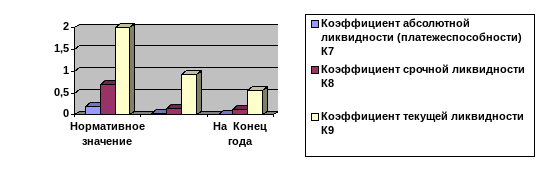 | Коэффициент срочной ликвидности К8 | 0,7 | 0,16 | 0,13 | -0,03 |