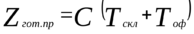 Необходимые оборотные средства для содержания запасов готовой продукции ZГОТ.ПР определяются плановой себестоимостью среднесуточного выпуска товарной продукции С, длительностью пребывания товарной продукции на складе Тскл , а также необходимым временем для транспортировки продукции со склада до станции отправления, оформления транспортных и расчетных документов на отправляемую продукцию и представления их в банк на инкассо Тоф по формуле