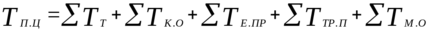 де ТТ – суммарное технологическое время, затрачиваемое на все последовательные операции по регламентируемому режиму; ТК.О – суммарное время, затрачиваемое на конкретные операции; ТЕ.ПР – суммарное время, затрачиваемое на естественные процессы (охлаждение, сушка); ТТР.П – суммарное время, затрачиваемое на внутрицеховую и межцеховую транспортировку продукции на протяжении всего времени производства до превращения ее в готовую продукцию; ТМ.О - суммарное межоперационное время, т.е. суммарное время перерывов в процессе производства и между сменами, в выходные и праздничные дни.