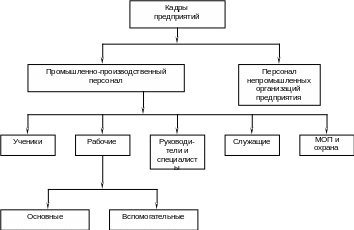 Кадры предприятия – это совокупность работников различных профессионально – квалификационных групп, занятых на предприятии и входящих в его списочный состав. В списочный состав включаются все работники, принятые на работу, связанную как с основной, так и с не основной его деятельностью.
