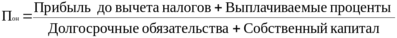 Этот показатель также характеризует эффективность управления инвестированными средствами и косвенно - опыт и компетенцию руководства. Поскольку сумма уплачиваемых налогов устанавливается государством и не зависит от конкретного предприятия, наиболее точным показателем прибыльности предприятия является прибыль до вычета налогов. Кроме того, прибыль должна включать компенсацию по выплате процентов по долгосрочным обязательствам, так как размеры процентных ставок также устанавливаются вне предприятия. Данные обязательства отражены в числителе приведенной формулы. Некоторые финансовые аналитики используют показатель чистой прибыли в числителе данной формулы, определяя тем самым эффективность общих инвестиций.