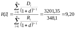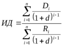 Индекс доходности – это отношение суммарного дисконтированного дохода к суммарным дисконтированным затратам: