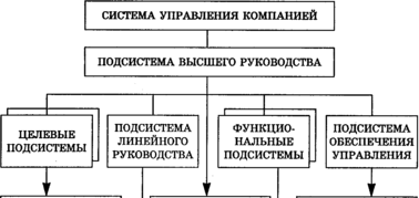 в которой осуществляется преимущественно стратегическое управление, контроль за деятельностью подразделений компании и дочерних компаний, а также наблюдение за деятельностью зависимых компаний. Альтернативой выделению такой подсистемы может быть распределение функций высшего руководства по целевым подсистемам;
