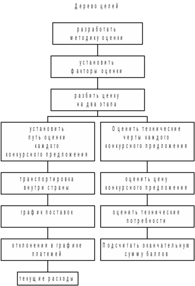 Рассмотрим одну из проблем формирования тендера – разработку методики оценки конкурсных предложений. Построим дерево целей.