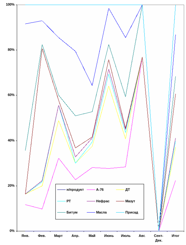 | Дизтопливо | 26% | 579825 | 60% | 1346977 | 8,3% | 185098 | 5,3% | 118194 |