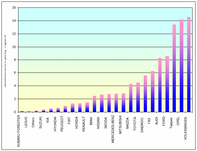ис. 5 Діаграма попиту машин на ринку України за 2000-2001 роки.