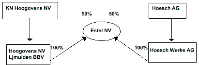 создали на паритетных началах (50% х 50%) управляющую компанию Estel NV в которую в качестве своих вкладов передали по 100% акций концернов. (рис.5)