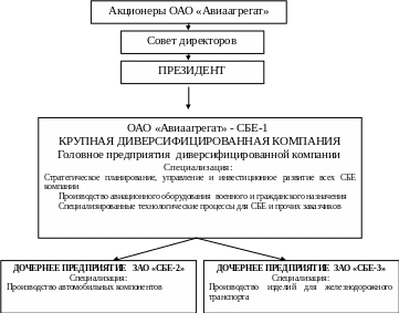 Рис.3.5. Укрупненная принципиальная организационно-управленческая структура ОАО «Авиагрегат» - «Диверсифицированная компания»