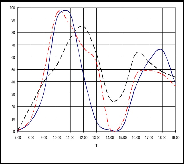 На время с 16.00 до 17.00 приходятся и пики познавательной и физической активности детей. Кривые не сходят до 0 и после 19 часов, так как есть надежда, что и после ухода детей домой эти процессы продолжаются.
