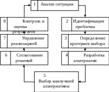 Процесс принятия решений — это циклическая последовательность действий субъекта управления, направленных на разрешение проблем организации и заключающихся в анализе ситуации, генерации альтернатив, принятии решения и организации его выполнения.