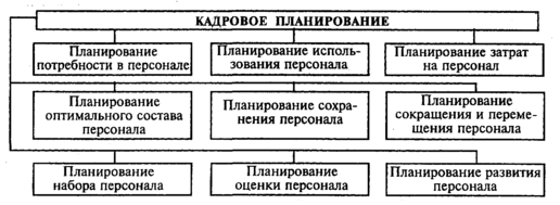 • кадрового планирования — определение качественной и количественной потребности организации в персонале;