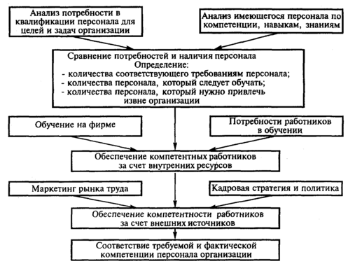 Эффективность деятельности персонала существенно зависит от его компетентности, поэтому одной из основных задач управления персоналом является управление компетенцией персонала, включающее сравнение потребностей предприятия с наличными ресурсами и выбор форм воздействия для приведения их в соответствие с потребностями данного предприятия.