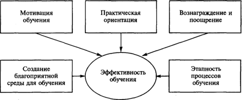 Система подготовки может быть эффективной только в том случае, если будет проанализировано существующее положение, оценена перспектива и сформирован образ желаемого будущего, спрогнозированы изменения, подготовлены проекты изменения, определены сроки и затраты. Характеристики системы обучения персонала с позиций ее эффективности приведены на рис. 8.