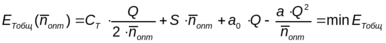 Расчет заканчивается определением минимума величины суммарных издержек по формуле: