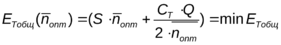 При практическом использовании этой формулы необходимо учитывать, что в общем случае значения nопт могут получаться нецелочисленными, что противоречит физическому смыслу n как количества поставок. Округление по арифметическим правилам до целого в данном случае неправомерно, т.к. целевая функция ЕTобщ (n) несимметрична относительно значения nопт и указанная процедура округления может привести к существенной ошибке в определении минимума ЕTобщ. Для исключения возможной ошибки в данном случае необходимо проверить неравенство следующего вида