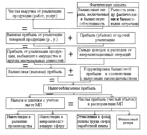 На рис. 14 показаны основные направления формирования и использования прибыли на МП в общем виде.
