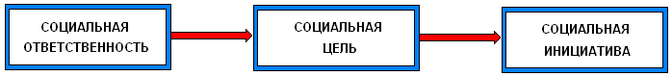 Социальная ответственность возникает при выполнении служебных, семейных, гражданских, общественных и личных обязанностей. Она отражает склонность личности придерживаться в своем поведении общепринятых в обществе социальных норм и отвечать за результаты их исполнения. Примером может служить «Клятва Гиппократа» — общепринятая норма социальной ответственности для врачей перед пациентами. Социальная ответственность может быть индивидуальной, групповой и общественной. Она неразрывно связана с реализацией социальных инициатив в рамках принятых социальных целей (схема 3).