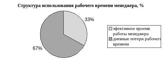 2. Студенты анализируют итоги таблицы 3 и 4, на основе чего рассчитывают и представляют графически структуру использования рабочего времени менеджера (см. рис.2).